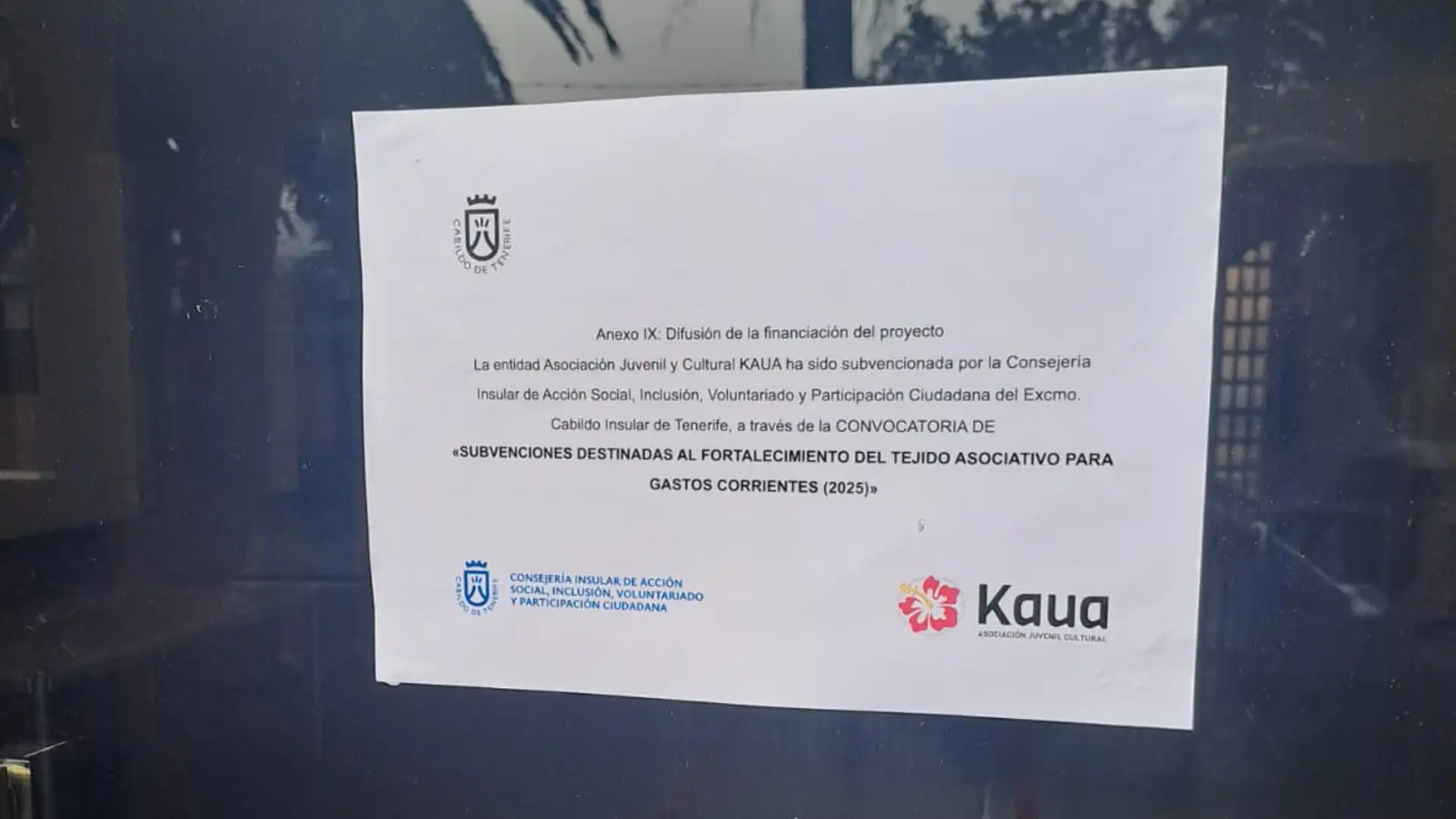 La Asociación Juvenil y Cultural KAUA ha sido beneficiaria de la convocatoria de Subvenciones destinadas al fortalecimiento del tejido asociativo para gastos corrientes (2025) del Cabildo de Tenerife.